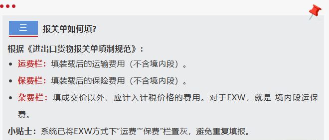 EXW成交方式出口报关单新规下杂费栏的填写方式